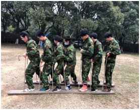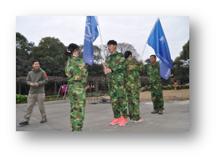 ? 1月15日一早,我們陸續(xù)集合在訓(xùn)練營并換上訓(xùn)練服,所有人的精神面貌立馬改變,個(gè)個(gè)英姿颯爽。在教練一聲口哨下,我們迅速成排成隊(duì)站齊。經(jīng)教練明令,拓展期間不允許遲到早退,并需將隊(duì)伍分為兩小隊(duì),并選派隊(duì)長與政委各一名。經(jīng)商量后急于大顯身手的年輕隊(duì)員組成東方紅隊(duì),口號(hào)為日出東方,唯我不敗;另一隊(duì)則是集智慧與經(jīng)驗(yàn)于一身的老狼隊(duì)。