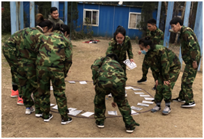 接著我們進(jìn)行了蒙眼聽指揮、高空跨越、達(dá)芬奇密碼等項(xiàng)目