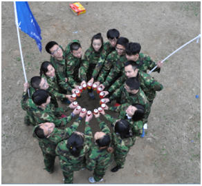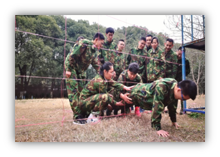 ? ?在經(jīng)過一塊五的團(tuán)團(tuán)抱熱身的歡笑后,我們進(jìn)行了第一個(gè)拓展訓(xùn)練項(xiàng)目----穿越電網(wǎng)。該項(xiàng)目一個(gè)團(tuán)隊(duì)站在一個(gè)蜘蛛網(wǎng)繩的一面,通過數(shù)量有限、大小不一的網(wǎng)口,在不能觸網(wǎng)的規(guī)則下,項(xiàng)目進(jìn)行中不可以說話,要求隊(duì)員在規(guī)定時(shí)間內(nèi),通過網(wǎng)口將團(tuán)隊(duì)所有人員輸送到網(wǎng)的另一面,在此過程中參訓(xùn)學(xué)員的任何部位都不允許碰網(wǎng),否則被觸碰的洞口將被封閉,每個(gè)洞口只可以通過一個(gè)人。規(guī)則只聽了一遍,如何實(shí)施才是關(guān)鍵,兩隊(duì)開始嘰嘰喳喳各抒己見,老狼隊(duì)做了第一次嘗試,很快就觸網(wǎng);經(jīng)老狼隊(duì)做第一次嘗試會(huì),我們東方紅隊(duì)出馬,在順利通過兩人后觸網(wǎng)。很快,在老狼隊(duì)第二次嘗試中他們隊(duì)長開始做全程指揮,并分配好隊(duì)員入網(wǎng)次序和觀察人員,雖在5人通過后觸網(wǎng),但是他們老狼隊(duì)信心十足。而我們東方紅隊(duì)即便在入場前約定好聽隊(duì)長的,在過網(wǎng)時(shí)仍然嘰嘰喳喳,群龍無首,略勝在整個(gè)隊(duì)伍的人身形消瘦,整個(gè)隊(duì)伍在進(jìn)去剩3人的情況下觸網(wǎng),我們整個(gè)隊(duì)伍都很高興,覺得勝利在望。這時(shí)教練一聲令下,只給我們每個(gè)隊(duì)伍5分鐘時(shí)間,也就是一次機(jī)會(huì),局勢越來越緊張。老狼隊(duì)在進(jìn)行最后一次嘗試,只見他們整個(gè)隊(duì)伍非常安靜,全程就只聽到隊(duì)長在指揮,全程就只有隊(duì)長在講話,所有隊(duì)員都聽從他的指揮,最后他們?cè)谝?guī)定時(shí)間內(nèi)全體通過,全場發(fā)出歡呼聲,包括我們東方紅隊(duì)。
